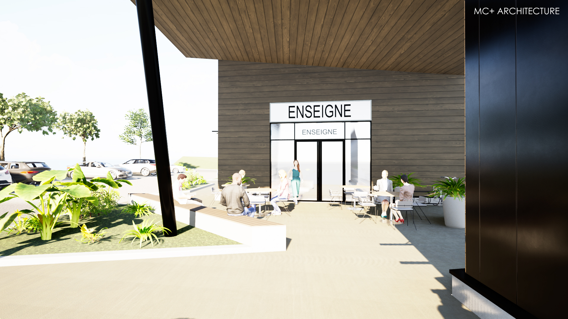 Une belle surface extérieure abritée par un grand auvent sera réalisée afin de relier les deux édifices.